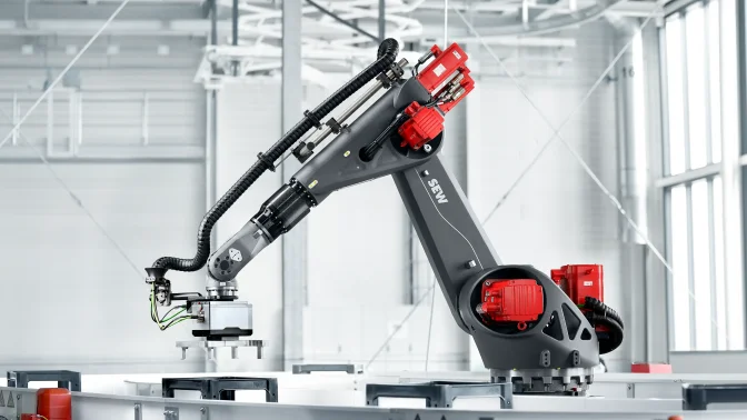 Offene Schnittstellen erlauben die Anbindung bestehender Peripherien und eine nahtlose Erweiterbarkeit – für höhere Prozessabdeckung, bessere Auslastung, stabile Qualität und eine schnellere Amortisation. Die hohe Bewegungsfreiheit, die Ausführung komplexer 3D‑Bewegungsabläufe sowie die Integration in bestehende Logistikprozesse ermöglichen ein präzises und produktschonendes Handling: vom Greifen und Ausrichten über das Gruppieren und Positionieren bis hin zu Stapel‑ und Palettieranwendungen. Das Ergebnis sind effiziente Materialbewegungen, kurze Taktzeiten und eine hohe Anlagenperformance.