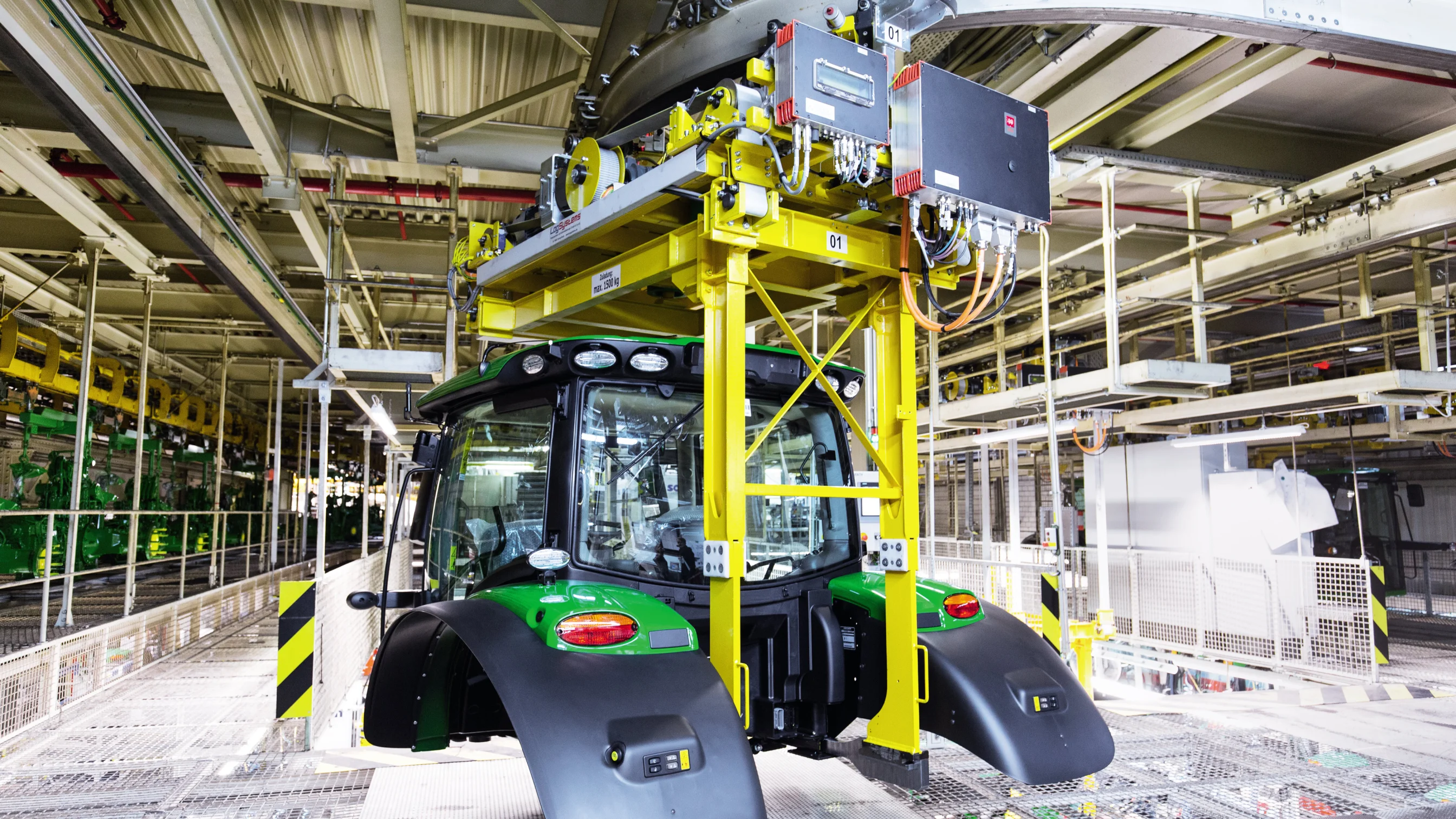 Zurzeit wiegt bei John Deere die schwerste Fahrerkabine 850 Kilogramm. Die Kapazitätsgrenze des Kabinenförderers beträgt aber jetzt schon 1 500 Kilogramm und bietet damit noch ausreichend Reserve.