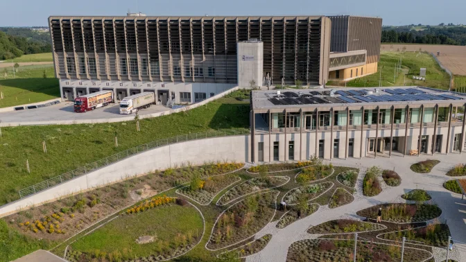 Weleda ist ein multinationales Unternehmen, das sowohl Schönheitsprodukte als auch naturheilkundliche Arzneimittel herstellt. Produkte, die für Natürlichkeit, Achtsamkeit und Nachhaltigkeit stehen, und die wir in Drogerien und Apotheken sofort erkennen. Doch wie nachhaltig sind die Prozesse hinter diesen Produkten? Mit dem Cradle Campus in Schwäbisch Gmünd setzt Weleda ein starkes Zeichen: Für eine Lagerlogistik, die ökologische Verantwortung, innovative Technik und soziale Werte vereint. Das neue Logistikzentrum folgt dem Cradle-to-Cradle-Prinzip, einem Ansatz, bei dem Produkte und Systeme so gestaltet sind, dass sie am Ende ihrer Lebensdauer vollständig wiederverwendet oder der Natur zurückgeführt werden können.
