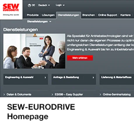 Services for the orientation phase Personal consultation Resources & tools for the orientation phase SEW-EURODRIVE Homepage Information brochures Journal articles & newsletter Social media channels Trade shows & customer events ESIS® – Easy Supplier Integration Services Orientationmore Orientationmore Planning & engineeringmore Installation & startupmore Operationmore Modernizationmore