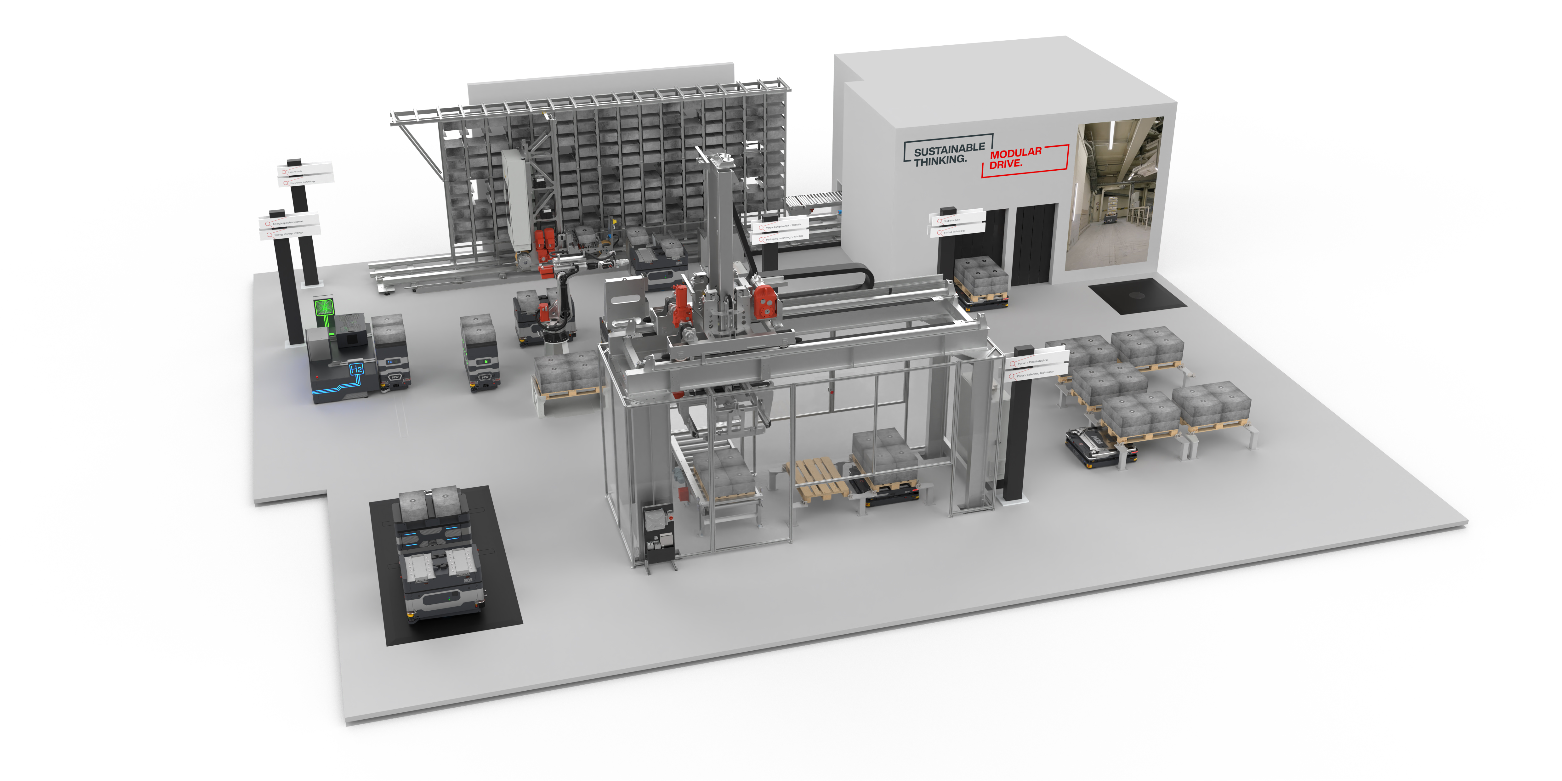 Lagern, Transportieren, Handling und Palettieren: SEW-EURODRIVE zeigt live das exakte Zusammenspiel seiner Antriebs- und Automatisierungstechnik.