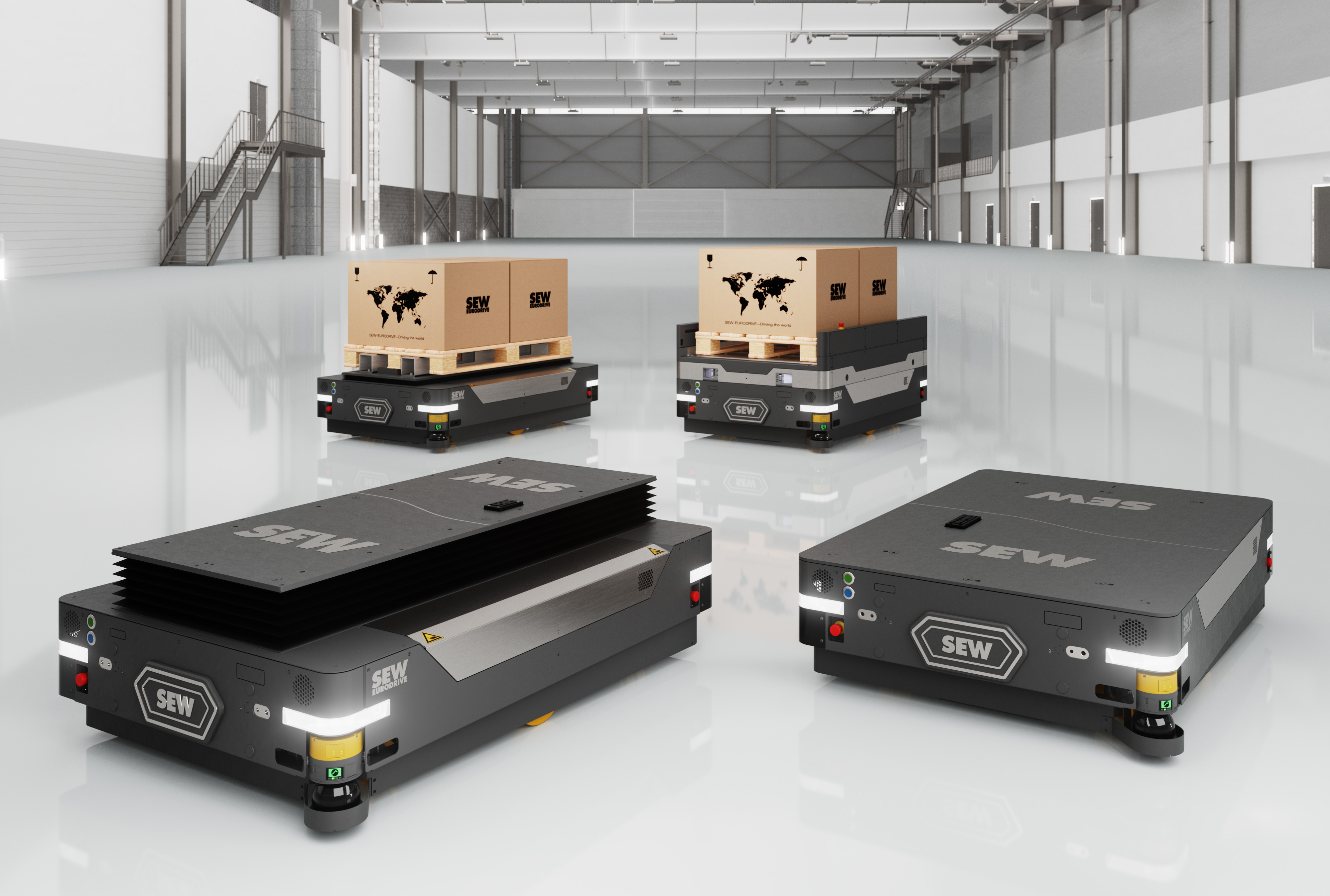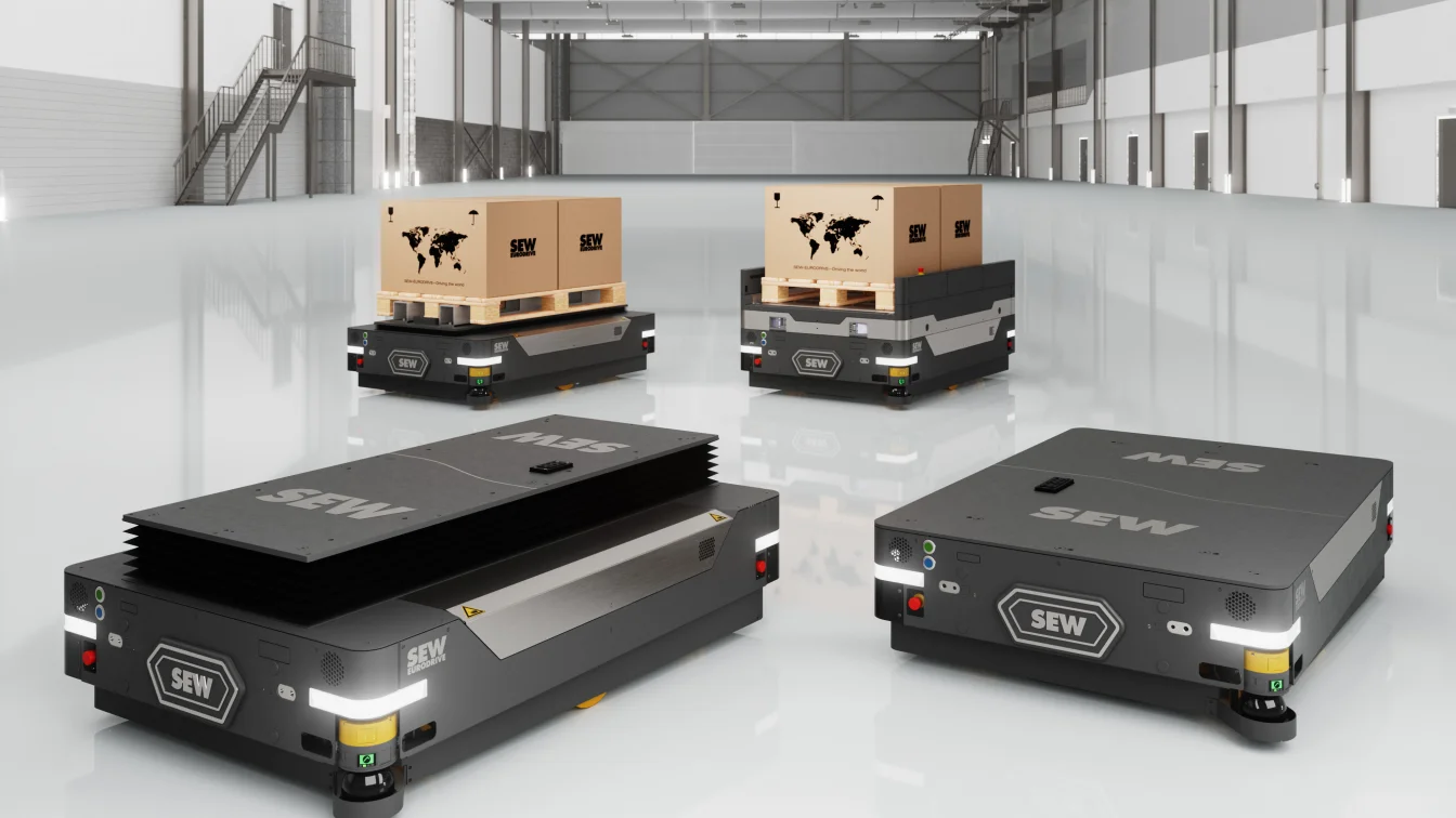 Mit dem neu aufgesetztem Portfolio für mobiler Robotik bietet SEW-EURODRIVE eine Plattformlösung, die diesen Anforderungen gerecht wird. Sie vereint Flexibilität, Modularität und technologische Innovation und ist für unterschiedlichste Transportaufgaben geeignet – von Paletten über Behälter bis hin zu Sonderladungen. Standardisierte Lastaufnahmemittel wie EPAL-Palettenhubfunktionen, Rollenförderer oder kundenspezifische Adapter sorgen für hohe Anpassungsfähigkeit. Offene Schnittstellen ermöglichen Integratoren die einfache Anbindung individueller Module und die Umsetzung branchenspezifischer Lösungen. Die modulare Architektur erlaubt eine schrittweise Erweiterung.